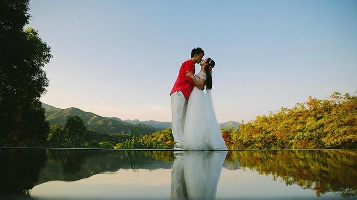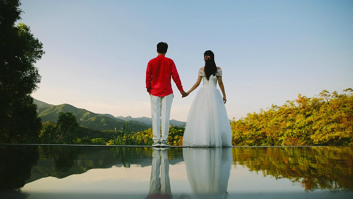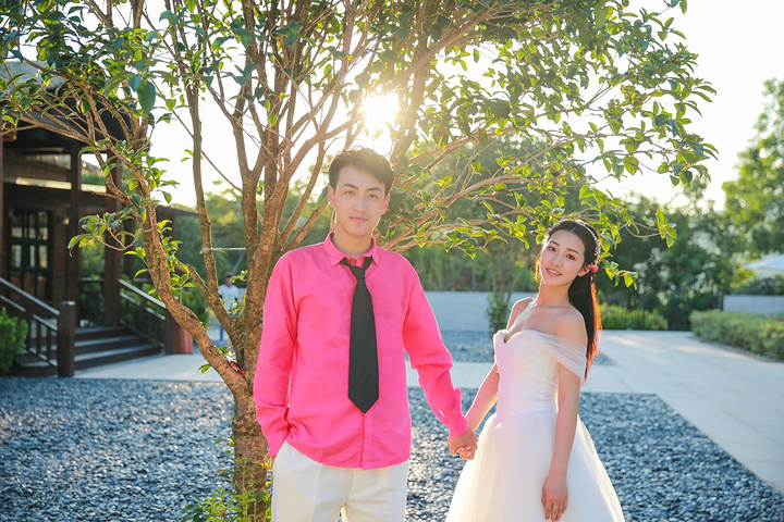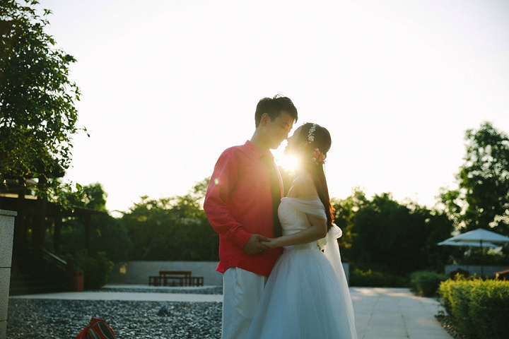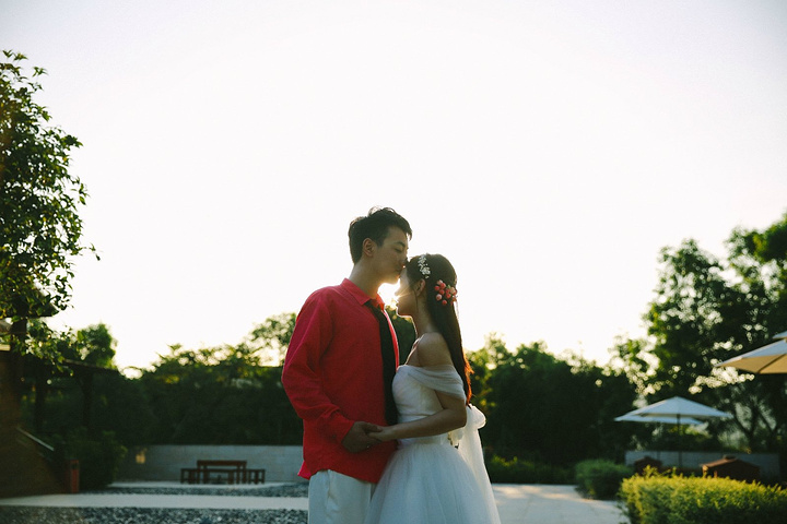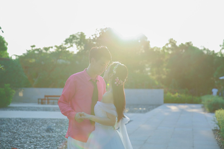 在太阳落山的时候,光线非常柔和,两对情侣也状态极佳,用照片记录着这一美丽时刻。