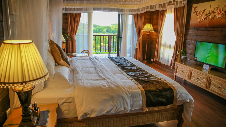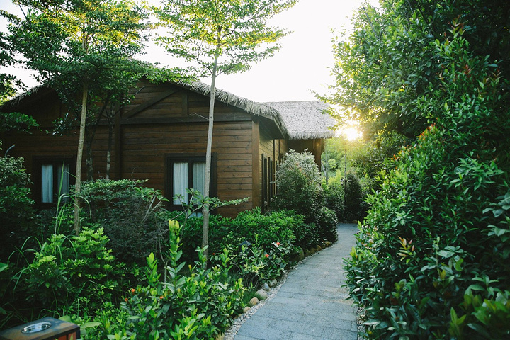 山顶木屋都是独栋设计,外观如其名木屋,主要材质是木头搭建而成,房顶铺上茅草,十分有特色,完美的融入树丛之中。