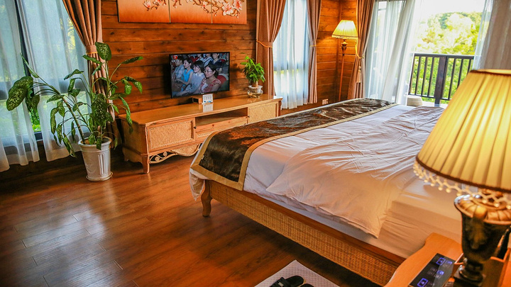 走进房间,整个房间装修的十分有特色,基本上以木质和竹编材质为主,让人感觉十分的原生态。
