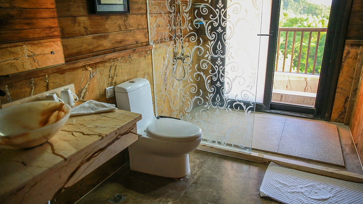 很开心在工作人员的引导下参观了山顶木屋的房间和设施。