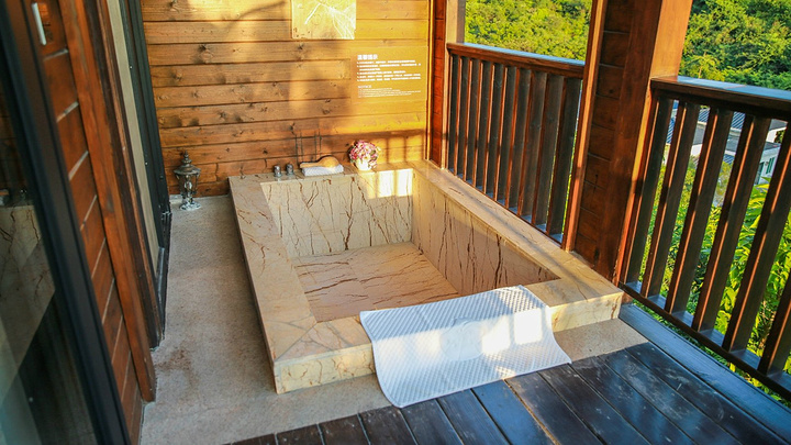 每一个房间都是独立的阳台,阳台有温泉池。如果不想去温泉区,可以在此单独静静的泡个温泉,阳台外风景独好。