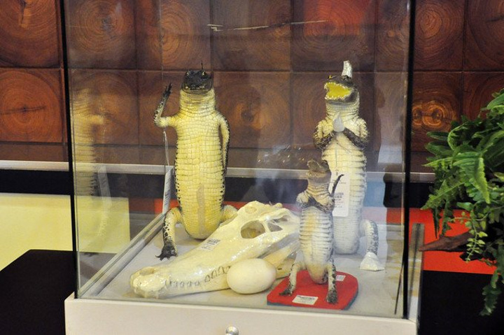 ...过看着被摆成各种姿势的鳄鱼标本,特别是作合十礼脸带微笑的鳄鱼一家三口,突然有一种相当讽刺的意味