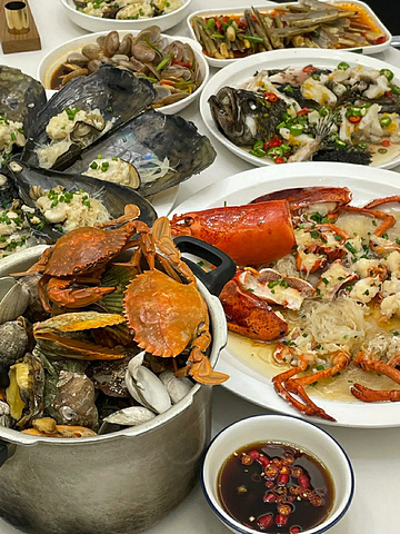 这家来过好多次啦 只要有小聚餐都会来!!!每次来都是人山人海!!!一定要避开高峰期 这次是捅了海鲜窝了 龙虾 鲍鱼 还有大带子 以及一整锅的海鲜 主打的就是一个海鲜宴 龙胆鱼是泡椒味的 我蕞喜欢里面的紫菜 就是一个好吃!他们家的黄金流沙球图片jujuju好吃 糯叽叽 真的不够吃不够吃!!!下次再来……