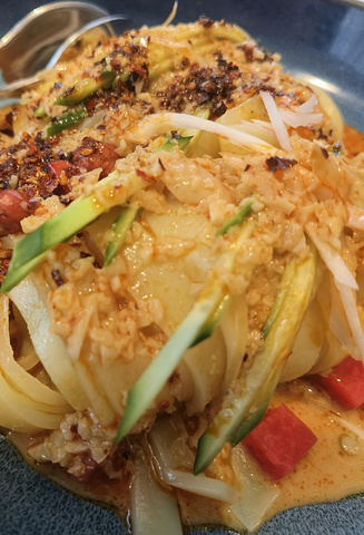 中午去的,客人还不少,大厅基本上都坐满了。餐厅面包🍞,算是他家的特色吧,确实挺好吃的,淡淡的奶香味,一份没吃够,又加了一份。西域凉皮,也是推荐菜品,值得一点。他们家的菜品,摆盘都特别精美、漂亮,感觉挺适合商务宴请的。