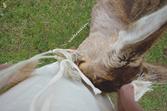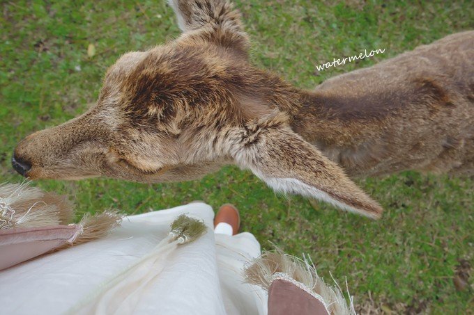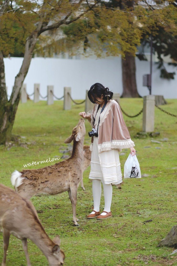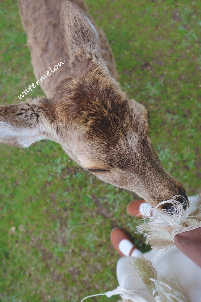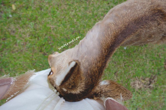现在看到的鹿是酱婶的 温柔乖巧给饼干就给摸。等了半天总算等到一张画面内没其他人的。