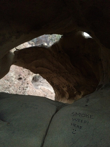 ...一个隐蔽的小小小岩洞,必须要登到顶才可以发现,岩洞洞口面向悬崖的方向,坐在岩洞中就可以俯瞰全景