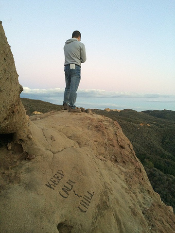 洛杉矶周围有几个State Park虽然没有黄石那么壮丽,但想感受下自然还是很棒的选择。 Topanga State Park 离LA市区只有不到20英里。最喜欢这里的一点是在Eagle Rock Trail的终点Eagle Rock里面,有一个隐蔽的小小小岩洞,必须要登到顶才可以发现,岩洞洞口面向悬崖的方向,坐在岩洞中就可以俯瞰全景! 第一次去到这里发现以后便决定改天要晚上来洞里露宿一晚!要在山顶洞穴中看日出!