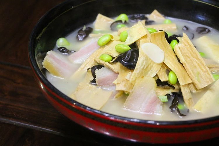 浓汤三鲜材料丰富,笋片饱满可口