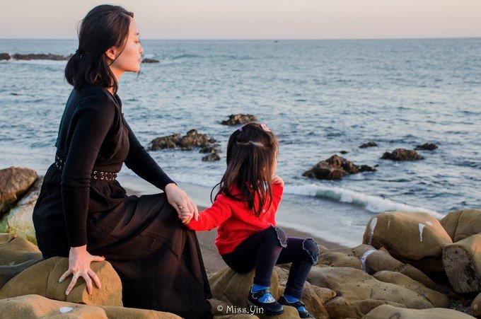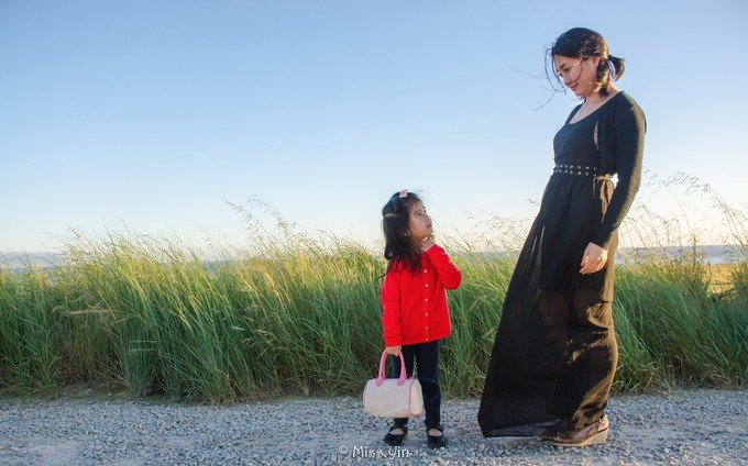 女儿和妈妈,红与黑的组合。