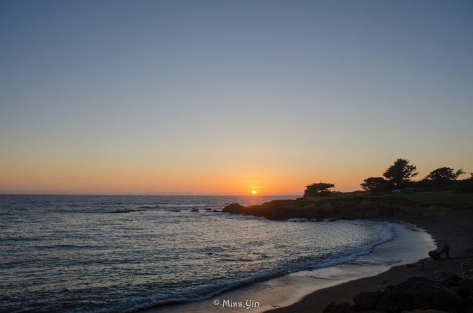 我们就一直在海边看日落,等着太阳掉进海平线的那一刻。