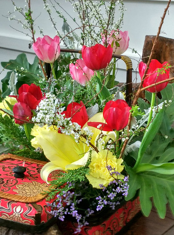 看地图觉得植物园离住的地方不远,决定走的去,早上六点起来在路上看到了一条山路问了路人说可以翻山过去,清晨山上寂静无人,我们沿着台阶奋力向上攀登,终于翻过了这座不知名的山,却看不到目的地,原来走错了,虽然这样,家人在一起互相包容,互相体贴,没有怨言,都鼓励对方,换个角度看问题,等于锻炼身体了。虽然很累,心里却暖暖的。这就是旅途带给我们的欢乐,欣然接受不可预见的事情。下山了,只好打车了,一会植物园就到了,心情一下豁然开朗,这里真是一个花的海洋,五彩缤纷,鲜艳欲滴,让你情不自禁的旳喜笑颜看,笑魇如花。