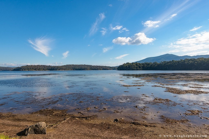 值得一提的是离开骆驼石极近的Wallaga Lake是个很美的湖,其实是湿地一样的地方,湖面极为平静,日出日落的时候如果有云,那真是美翻了啊。我们到的当天路过,看到天上的云像一块块粉色的小棉花糖倒影在水里,真是太心痒了,真后悔没有下来拍两张啊。这是回程的时候我们路过拍了一张,虽然是中午的大平光,但是还是可以看出这个湖很美哒,像镜子一样