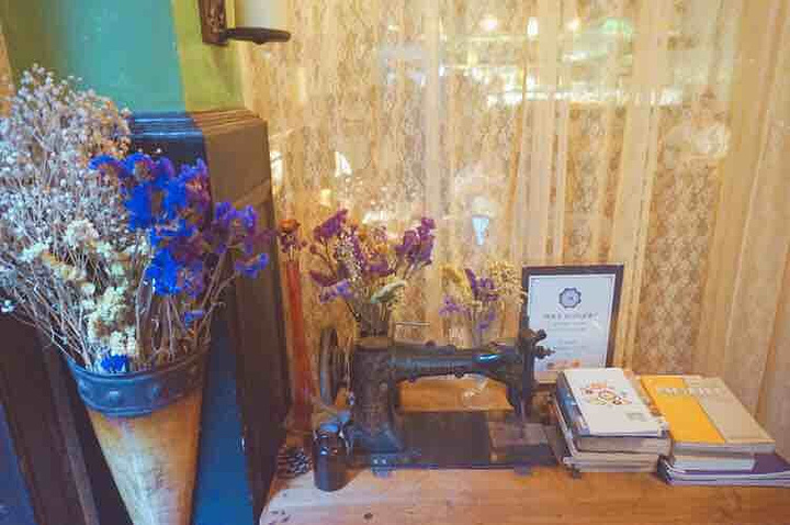 碧桃小馆。看起来还是满新的。盆栽拿铁和一般湧奥利奥饼干的不同。据说有100多岁啦?环境风格很复古风
