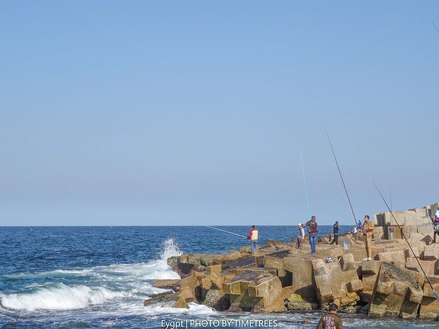 接着我们就去了灯塔的遗址了,眼前的地中海居然这么透彻,近岸的海水里虽然沉了一些垃圾进去,还能看到数米深的海底。那时候是我第一次看到这么洁净的海水,好像翠绿的宝石一般。海的那边就是欧洲了,希腊更加接近。