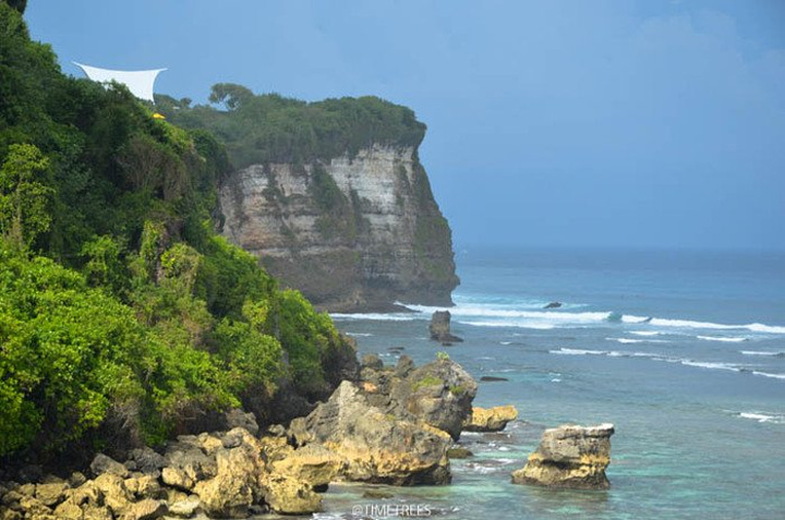 Blue Point位于Uluwatu乌鲁瓦图的山崖上,拥有无敌的浪漫海景。无敌的海景无边泳池,让人产生泳池连接着大海的错觉,美极了。之前都是情人崖的名气太大了,所以第一眼还是不由自主的哇了起来,山下的海水实在是太透彻了,有大片的礁石滩,远处才开始有大浪,原来这里是著名的冲浪圣地,来这挑战的冲浪客都是来自欧美的TOP高手。