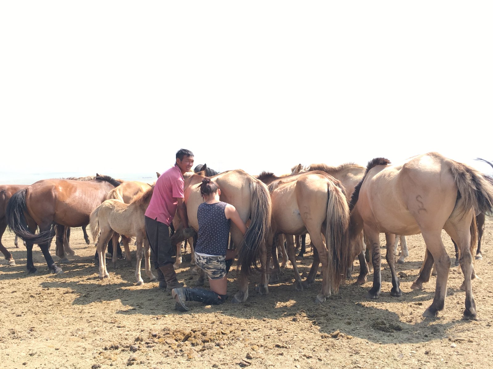 途中遇到牧民,正在挤马奶。