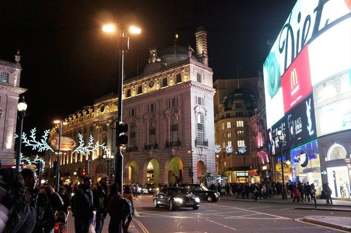 带着严重失眠之后昏沉地大脑从里昂飞往伦敦,王总所在的里尔离伦敦很近,火车一小时的车程,于是在我到达之前王总就已经在机场等我了。 gatwick机场有小火车(gatwick express)直接去市区,非常方便。作为留学狗,第一个目的地一定是位于leicester square的china town满足一把中国胃,大城市的中餐水平果然感人。 挂着圣诞节灯饰的picadilly circus的半月楼,伦敦的中国城就坐落于城市的最中心,旁边就是picadilly circus。