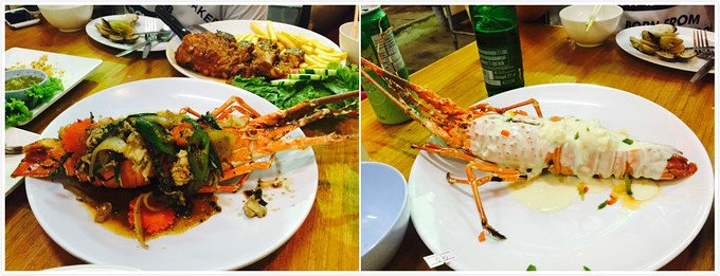 结束SPA,带着舒服的身体,去到了苏梅岛上还挺有名的一家海鲜大排档——红螃蟹 Crab Samui Restaurant 这家的特点是主打活海鲜! 价格不算便宜,但比国内划算,我们吃了2只大龙虾、1只大螃蟹、鲜虾刺身、还有各种贝类什么的,总共用了4000泰铢 味道也不错~!