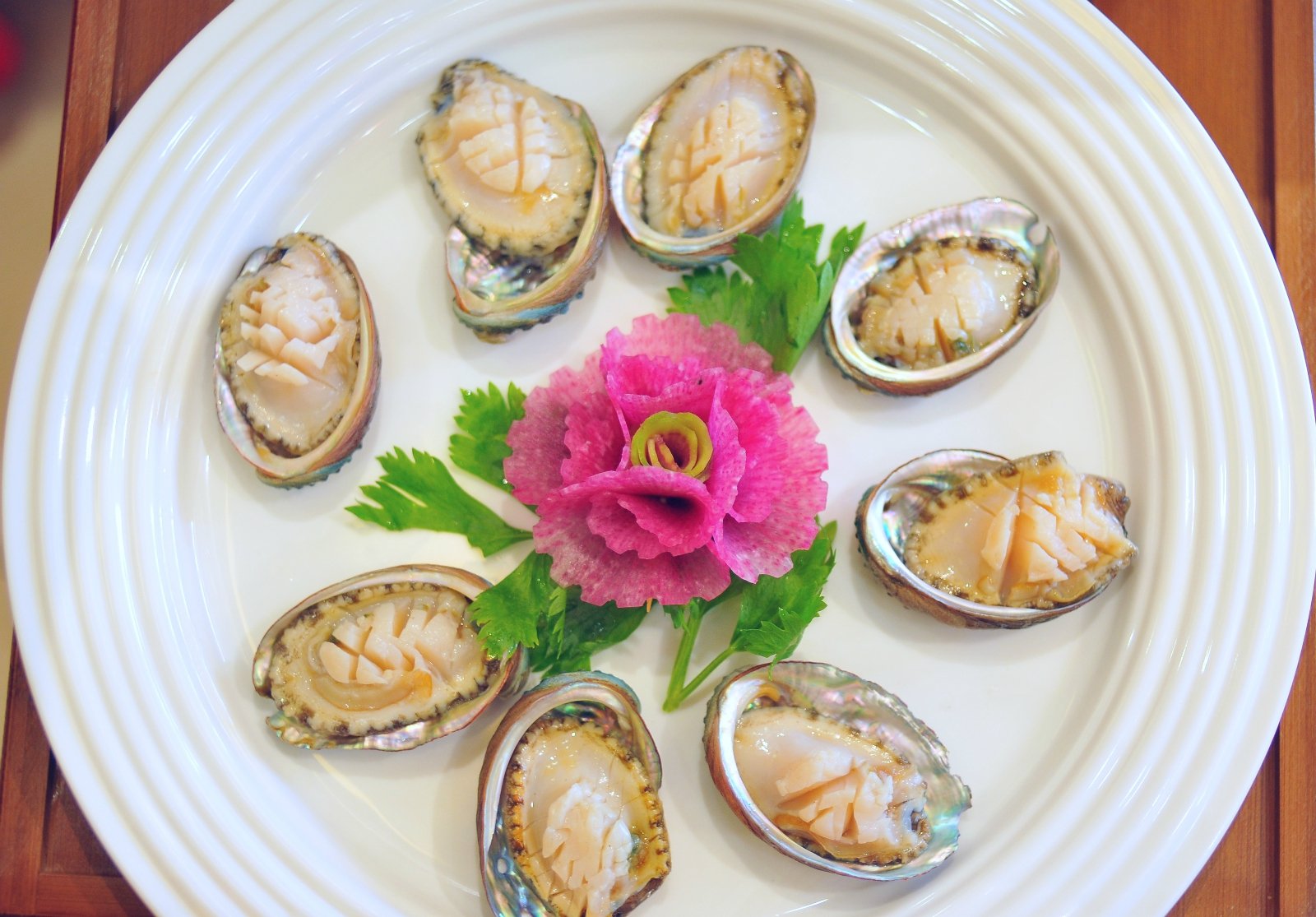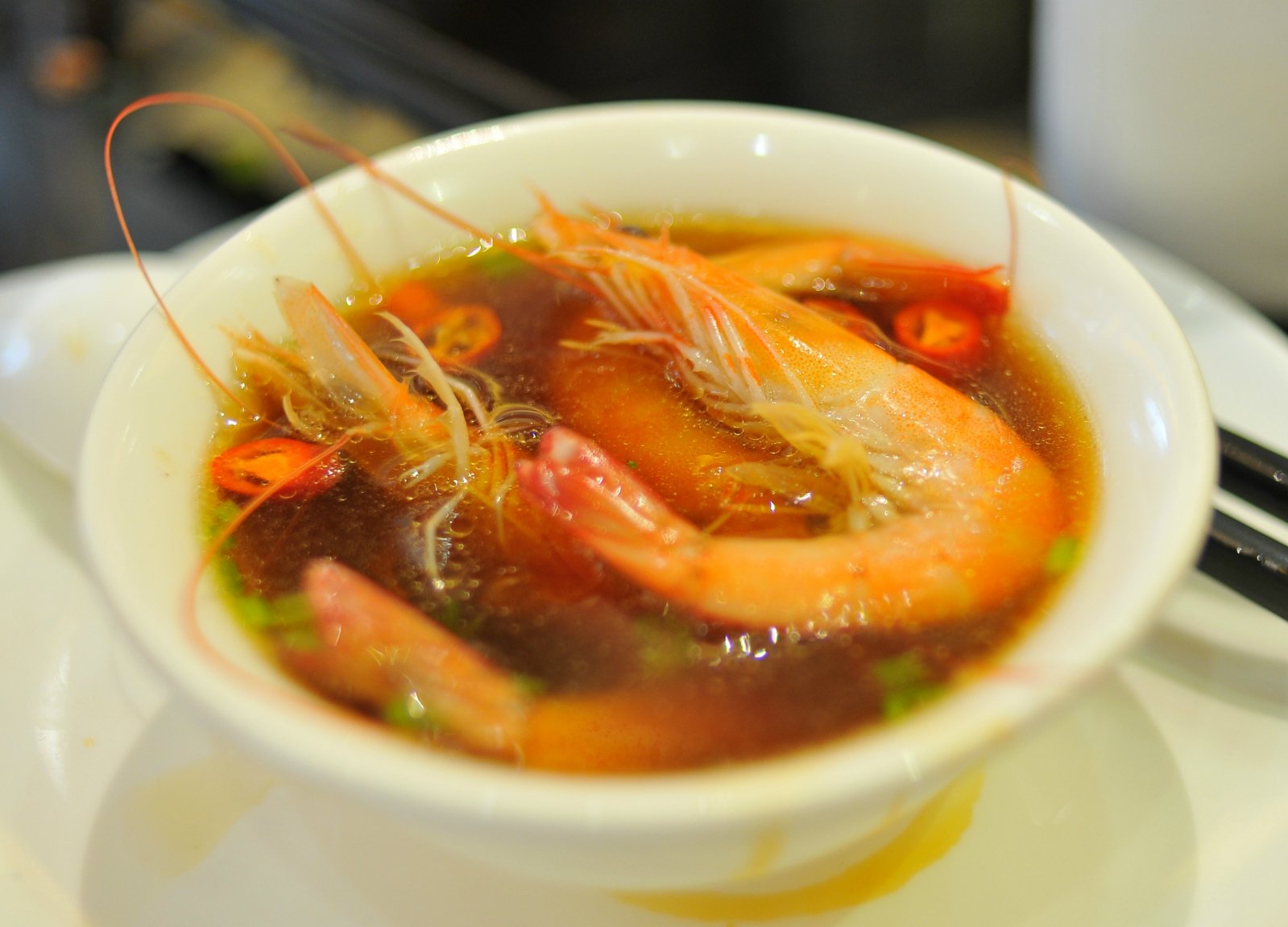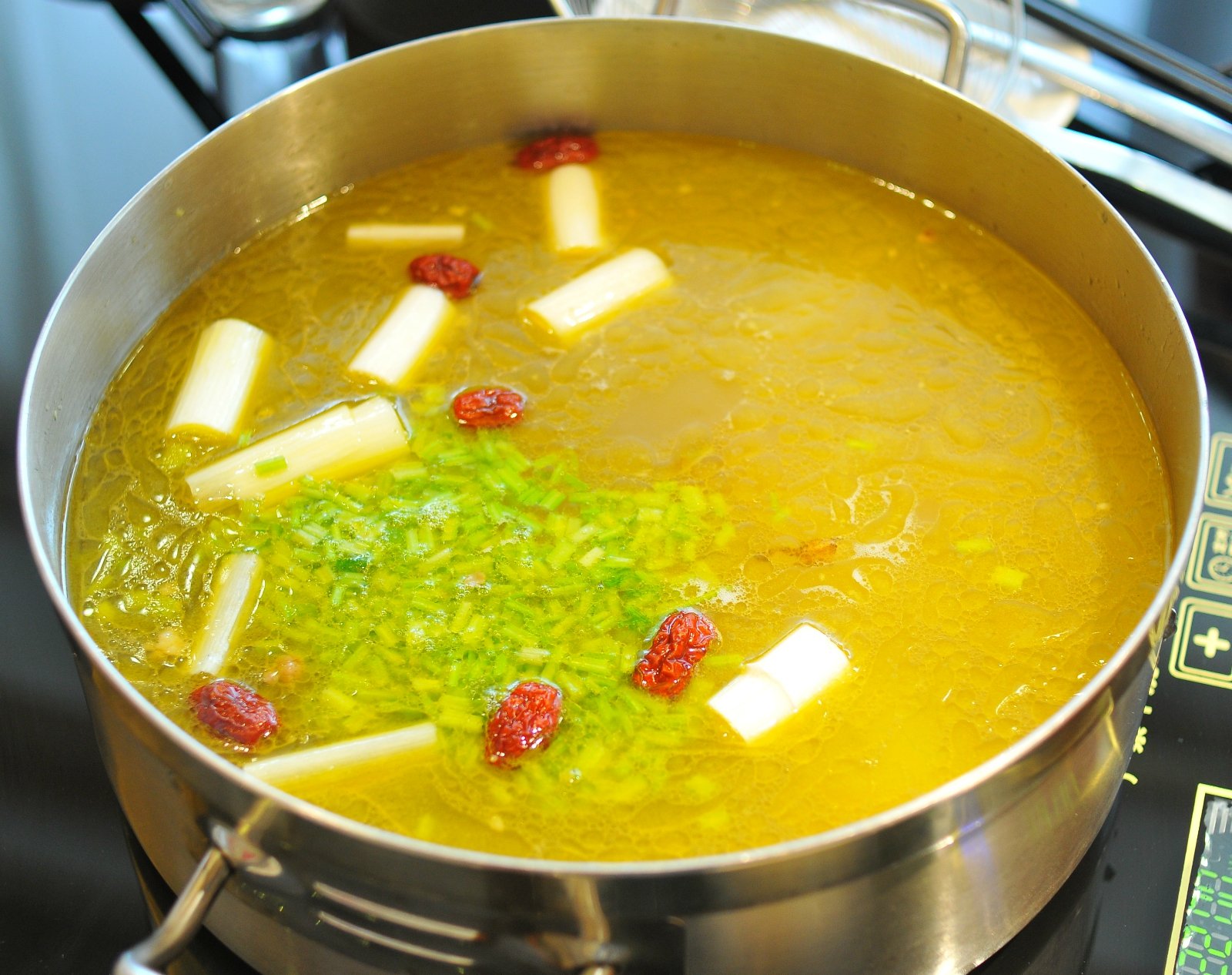 这时,服务员首先将8只活大连鲍鱼和一只活波斯顿龙虾倒入汤中,几分钟后,汤底翻滚开来,鲍鱼和波斯顿龙虾就能捞起,放入事先用小米辣、香菜、蒜泥、黄咖喱、日本芥茉酱油调好的蘸料里,既能尝到鲍鱼和蟹肉的鲜甜,又有多层次的味觉体验,咸、鲜、香、辣,层层递进,却不过分,味型上拿捏得很准。