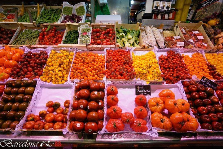 西班牙最具艺术感的一个市场,也是巴塞罗那最后兴建的市场。堪称“阳光浪花下的奇珍美味”,如此浪漫的喻意,谁还会怀疑西班牙人的热情、浪漫和吃货的本质呢?市场里有各类新鲜的水果、鱼肉、干货等等。 路线:抵达巴塞罗那主教堂门口,右转穿过Via Laietana即是。 时间:周一7:30-14:00;周二、周三、周六7:30-15:30;周四和周五7:30-20:30。 在这里,琳琅满目的蔬菜和水果,看到你傻眼!