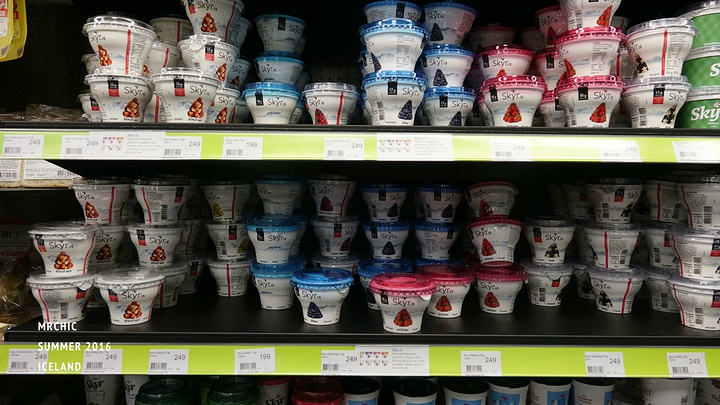 N多游记里提到的好吃的冰岛酸奶,大概是口味不合? 阿叱和朋友都觉得比较一般,因为这个酸奶真的太厚了,口感不是很习惯。 所以在机场便利店买了这一次之后我们再也没买这个酸奶了。