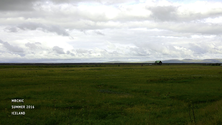 塞里雅兰瀑布周边的风景。一望无际,视野辽阔。 能看到的就是远处的雪山、孤零零的那么一两幢小房子。