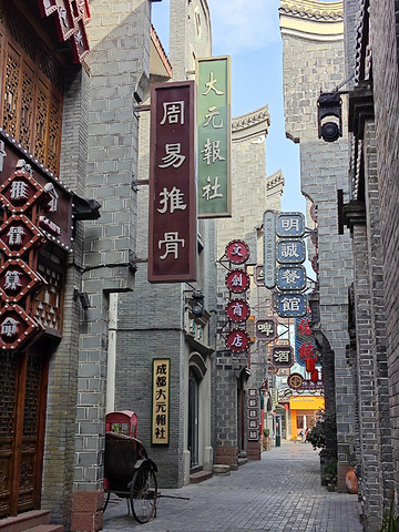 锦门位于成都市新都区,地铁3号线直达,三河场下车,骑行或者步行1公里左右到达。 目前商家入驻率不算高,只有为数不多的两三家小吃和火锅类。只看见了一家茶百道。 锦门的夜景很好看,灯光璀璨,影影绰绰。 来这里穿一身旗袍,撑一把纸伞,感受老上海风情。