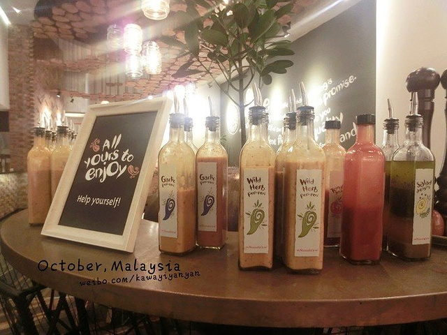商场内的这家名叫NANDO'S的连锁餐厅很好吃呢~主打是各种现烤的鸡类餐点,配搭多种自助的酱料,环境舒适便宜又好吃~ 无奈每天在吉隆坡都实在是饱饱的,不能尝试更多了(T.T)这时候多希望自己的胃能大一点点~