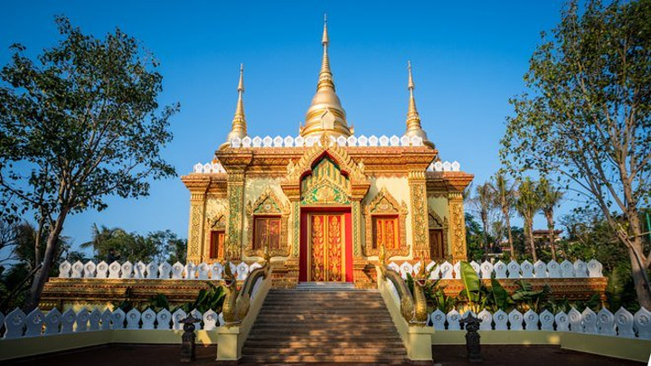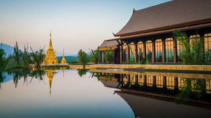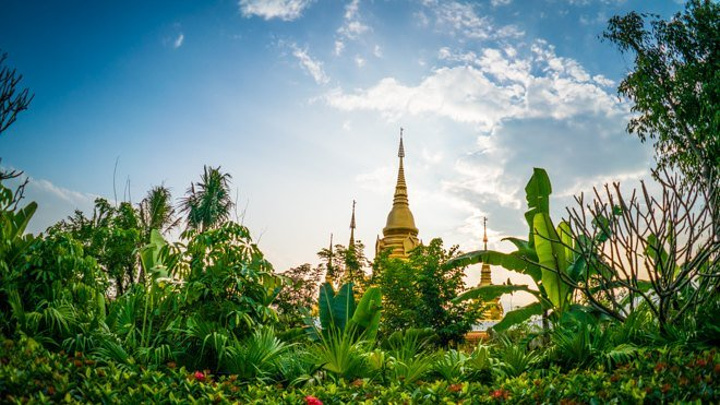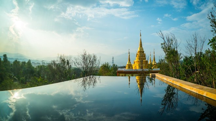 准备好没?马上要到这篇游记最奢华的酒店了,先看远处那座佛塔,这是西双版纳万达文华度假酒店的南传佛教主题区域。