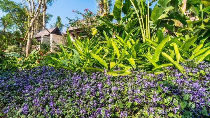 客房区以小别墅的形态出现。当你顺着幽长的山路来到酒店的大堂后,你看到的是隐藏在山坡上绿化中间的小别墅。这极像一个坐落在热带雨林中的原始村寨。每一户人家的吊脚楼依山而建,层层而上。