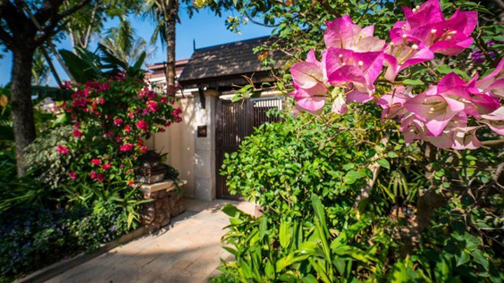 办完入住手续去往客房时,发现每栋别墅的入口都会有一些小艺术品,有些是孔雀,有些是大象,还有一些是莲花,这是在提示你这栋别墅的主题是这些对应的吉祥物。当你入住进客房后,你会在客房庭院内的门把手、水景喷头、廊架、灯饰上发现这些吉祥物的装饰细节。他们会一直在不经意中给你惊喜,我会告诉你我的房间吉祥物是大象么?