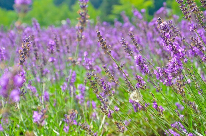 其中的一个薰衣草花田,这里的花田都是沿着山坡而种,因为我们抵达的时候已是下午,夕阳在田里留下了斑驳的影子,如果想拍美美的照片还是上午来比较好。
