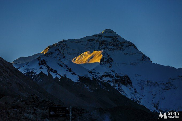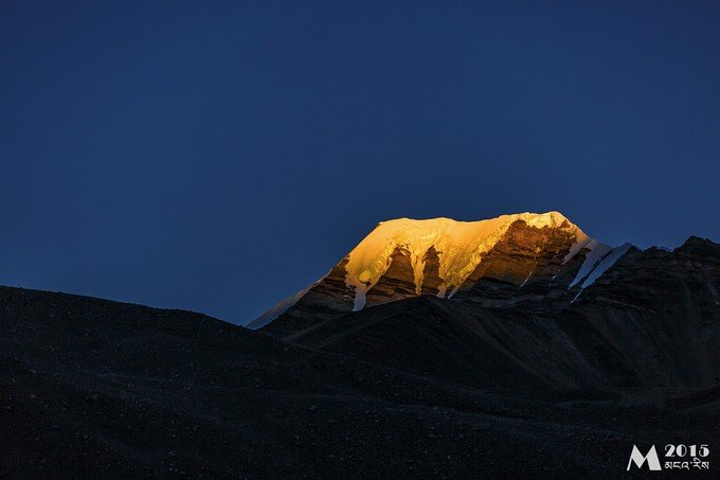 其实最先亮起的并不是珠峰,而是面对珠峰右边的另一座山峰格重康峰(7952m),他的背后还有一座著名的山峰卓奥友峰(8201) 不要问我为什么知道这个山峰的名字,因为我有百度!