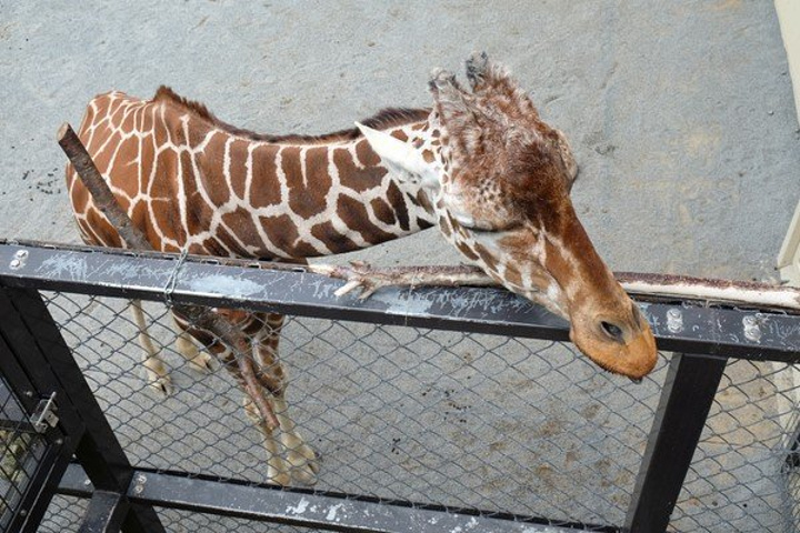 长颈鹿的笼子外有个二层,可以站在比它们还高的位置观察它们,在北京每次都是仰着脖er看,这样近距离的看倒是第一次。