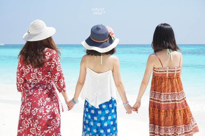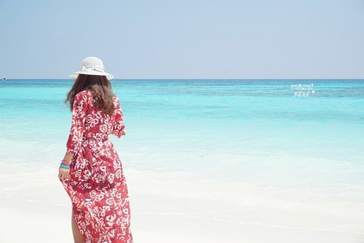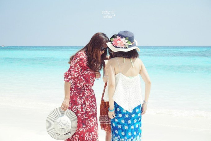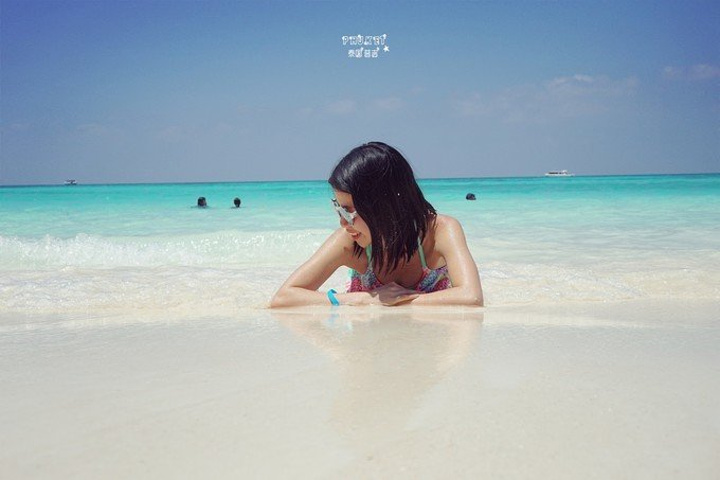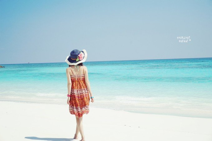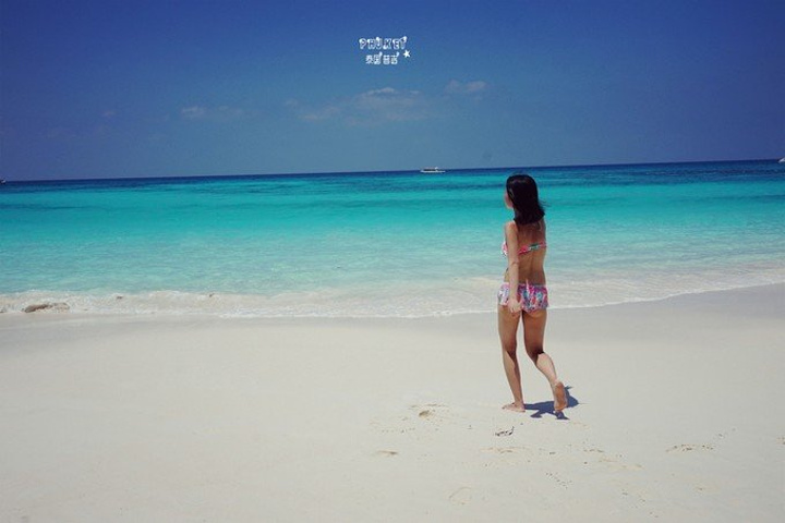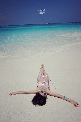 自己犯的错自己就要承担,有失必有得嘛!我们就在这美美的海滩上拍拍照啦!难得我们早到,现在并没有太多的船停留,所以错过浮潜的我们不会拍到人人人人人的海滩照!