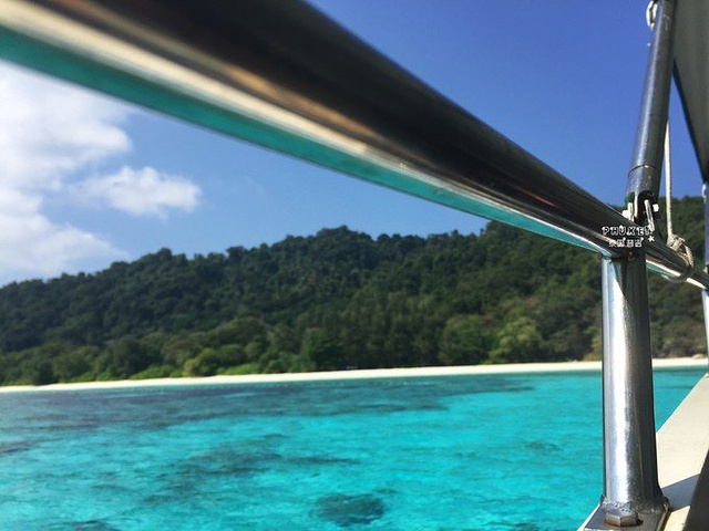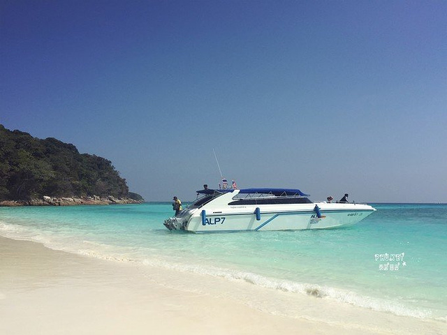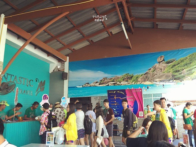 由于我们太大意,没有注意听,以为和去皇帝岛一样是所有人先拿行李去沙滩放下后,要浮潜的再上船出海浮潜,所以我们很兴奋地拿了我们所有的行李以及浮潜装备,下船啦!!!当我们还沉浸在兴奋中的时候,才惊觉导游似乎没有说几点集合出海?问了一下导游。。。原来出海浮潜的是直接出发了,并没有下船好吗!那我们是下来干嘛来了!带齐装备干嘛来了!欲哭无泪,只能看着出海浮潜的船离我们越来越远,可望而不可及。