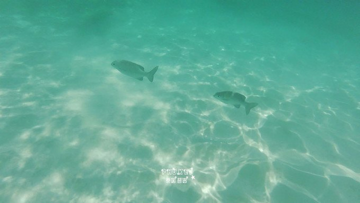 可是,就在这么这么近的地方!居然都能看到鱼,就在我们的身边游!哇!!!真的不敢想能去海中间浮潜的人,他们究竟可以看到多少的鱼!但或许也和在皇帝岛一样,小鱼都在水底游,没能游到身边来。或许,这就是我们在错过了出海机会后得到的一份大礼!容易满足的我们