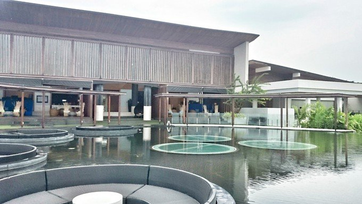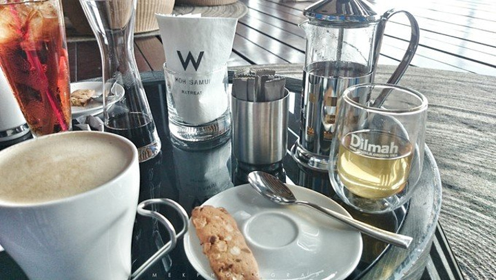 后来才发现租车行离我们刚刚掉头走回去的那里还要往前走一点,从租车行走回度假村起码要十五分钟以上,说好的两三分钟呢 摩托基本上是全新的,说是租车行其实是卖摩托的,因为只有三辆摩托可以出租。交了钱压了护照直奔W酒店。 苏梅租车比清迈贵,200一天,另外加了40的油。 我们住的度假村在邦珀尔海滩,W酒店就在隔壁的湄南海滩,跟着Google Map走很快就到了。原本挺近的路程,因为中途下雨跑去711买雨衣,谁知雨越下越大,然后又是躲雨,浪费了挺多时间,等我们去到时候雨才停止。 不用猜,我们也是慕名去参观莲花池的,但由于刚下过雨,莲花池上的坐垫被拆了,只能到室内坐着观赏。如果是外来人员参观需消费才能进入,没有低消。 地址:4/1 Moo 1 Tambol Maenam,Koh Samui 可直接Google map搜酒店名W Retreat Koh Samui。