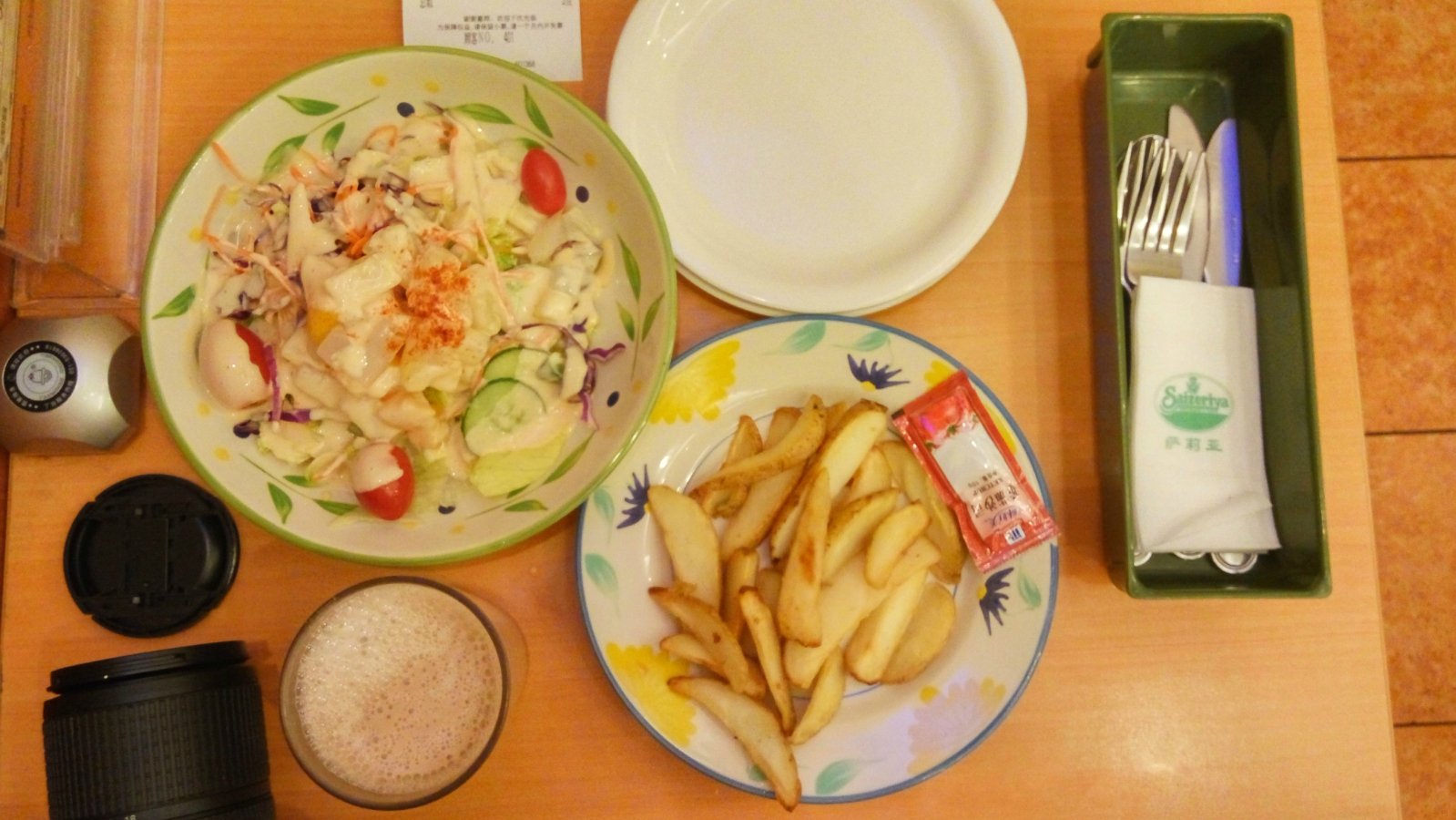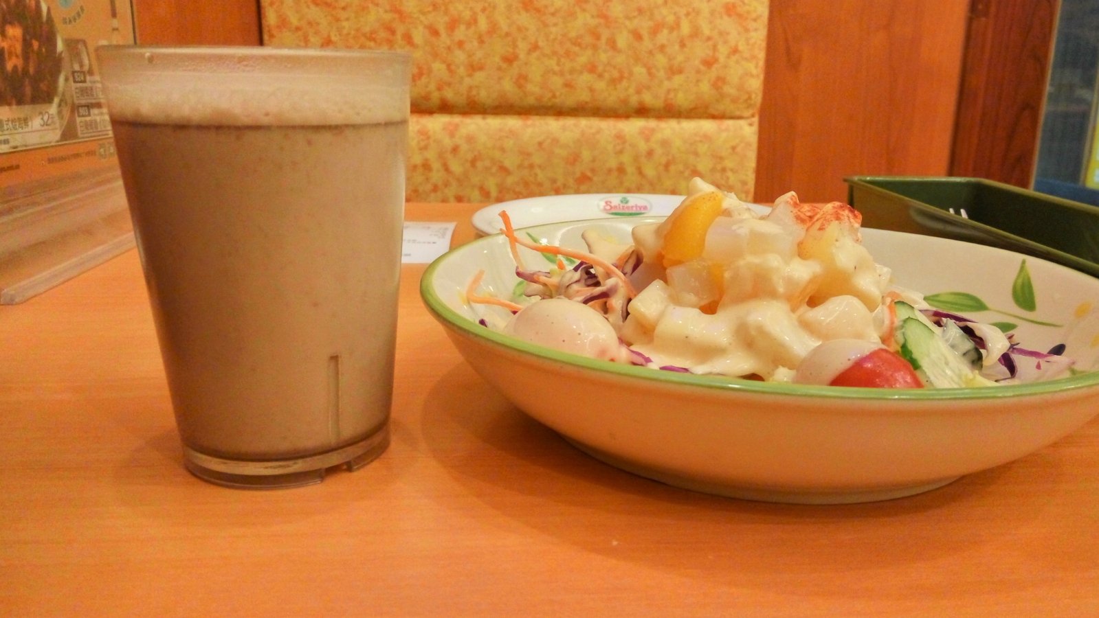 因为是连锁式经营,所以店里的风格很统一,都是黄绿搭配的田园风,而且不是加盟式的模式,所以店里的面积和服务都有保证,餐单在桌子下的抽屉里,看好后直接按桌面的按钮就有服务员前来下单了,上菜速度很快约5分钟左右,饮品可以单点,如果是聚会或下午茶推荐这里的畅饮,也就是自助的饮料服务,7元一位,无限续杯,奶茶还是可以的。