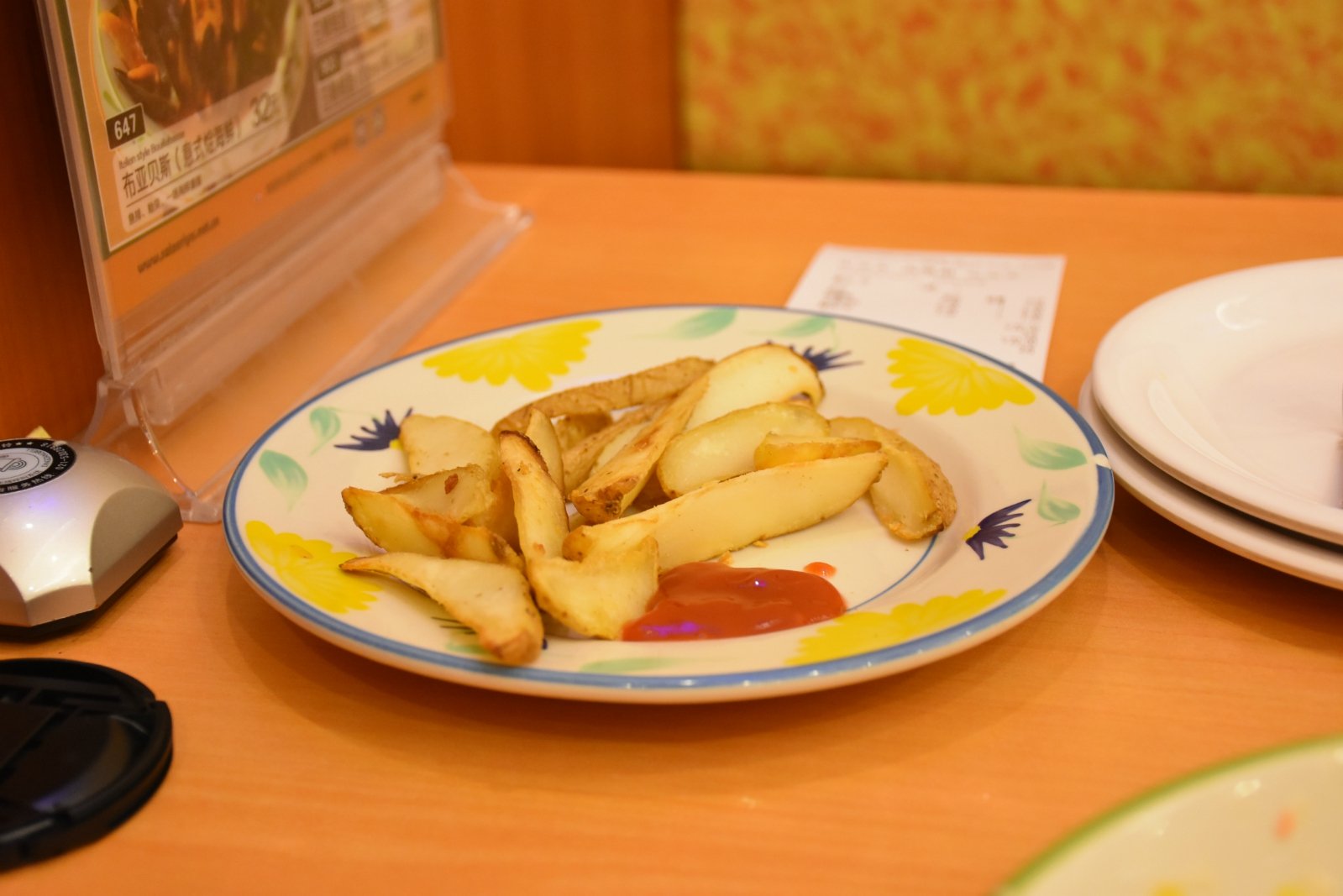 萨莉亚,一间连锁式的意式美食餐厅,价格定位中低端,加上食物出品有保证,广受食客欢迎,分店一开再开,这家萨莉亚进驻人和华通广场应该有两年了,这里公共交通非常完善,华通广场就连着地铁三号线人和站的B2出口,步行3分钟就能到达,地铁口站就是公交人和墟总站,多趟公交经过如724,708,花71,夜92等等,自驾来的话停车也很方便,因为华通广场旁边就是一个大型停车场。就是这里的交通状况不太好,经常会塞车。进入华通广场,沿着手扶电梯到二楼,往左边看,就能看到这家店啦,虽然店门口很低调,门面比较小,招牌也不大,但因为这家店的门口紧挨着电梯,很好找的。店内生意火爆,高峰时需要等位,不需要等位时,直接进入店里找位置就好了,这里的服务员一般不带客人找位置,这一点相比其他店有待改进。
