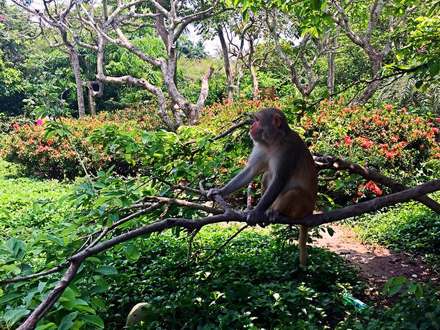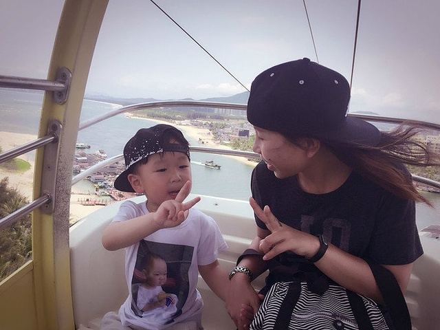 南湾猴岛有些远。 主要考虑到小朋友可能喜欢,所以咬咬牙就去了~~~ 后来想想其实挺失策的,路途太遥远,小孩子坐着也无聊,其实还不如在酒店玩玩水呢。。。 只是又觉着中午就要退房的,飞机在傍晚,下午干嘛好呢,没有房间换洗泳衣也不方便~~ 有利有弊吧。。。 天太热了,坐缆车的人很少,不用排队,所以果断选择了缆车~~~如果人太多或者不喜欢缆车也可以选择坐船上岛~