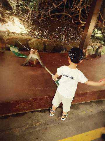 lzc对猴子的旗子产生了 浓厚的兴趣,两个人拔河了半天。。。 哦不,一人一猴。。。。