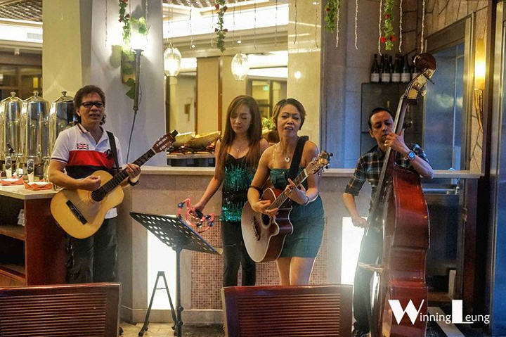 光是美景美食未免也是太千篇了,这个时候,lorrie的歌声像是把我拉入了新纪元。高亢响亮的女生,来自菲律宾的lorrie绝对是这里闪亮的风景线。
