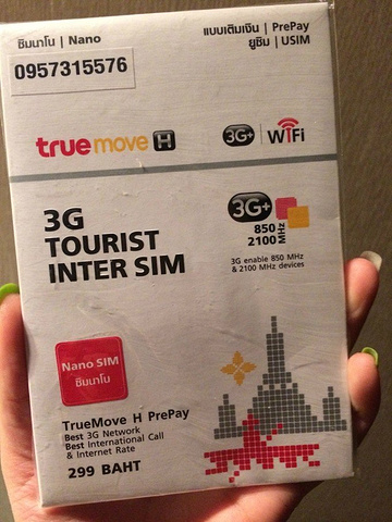 路过一家711,很顺利的买到了true move IP5S的nano卡, 299B 7天无限量3G流量 ,朋友们也顺利买到了手机卡 ,我是直接把卡插上就可以打电话、上网,朋友的三星和小米好一个折腾。。。PS:里面有中文说明 。这卡淘宝也有卖的,比泰国便宜,但是看评论有好多不好用的,所以大家自己斟酌。