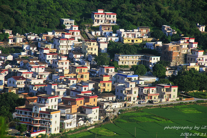 山上看的下川岛镇区,感觉是不是很小块区域?这高高矮矮矗立的房子很多都是酒店。看到图片中那最矮的一片红房子没?那就是我们住的地方~