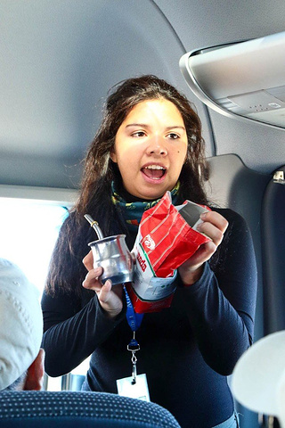 下船后,找了一辆中巴,游览蓬通博企鹅保护区(Punta Tombo Penguin Reserve), 大约两小时的车程。 导游英文十分流利,在车上给我们介绍南美饮料:玛黛茶(Mate). 茶杯里几乎是泡满了玛黛,然后用吸管慢慢吸。玛黛茶里咖啡因充沛,南美人喜欢互相传饮,导游递给我们她的玛黛茶,没人敢接手。