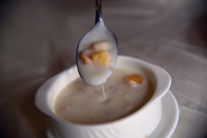 点了两个汤,核桃鸡肉奶油汤,蘑菇奶酪浓汤,都好喝呢