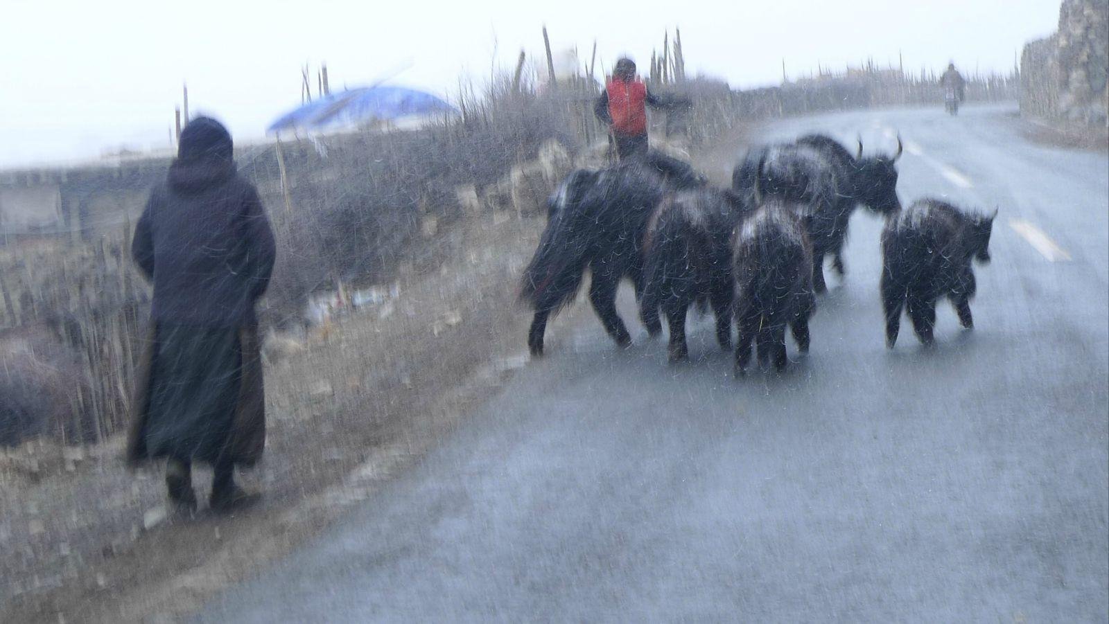 从来古出来天气还很好的有太阳,转个弯马上变天,还下起了很大的雪,还好我们今天不去波密了