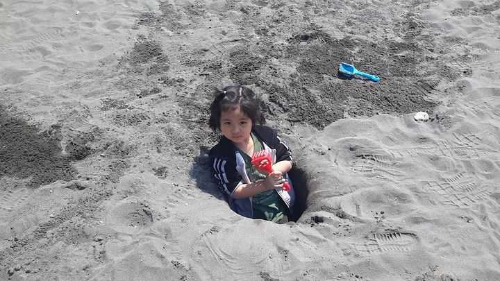 不知道大家有没有注意过这里,很漂亮的小岛!!一上岸就是浓浓的海鲜味扑鼻而来,可能拖拖饿了,没吃早饭吧!!!一股海水的咸味萦绕在鼻尖,远远就可以看看黑黑的沙滩!黑沙滩哦!是不是觉得棒棒哒!我看见一个哥哥把妹妹装进坑里了,妹妹也不说话呆呆的好可爱!!正好碰见有活动,因为快到元宵节了传统的赶脚!拖拖不爱骑着小电驴蹭的就跑了!!到了旗津看着一路的小吃摊,对于吃货的拖拖真的忍不住呀!应该剁手剁手,入口地方可以看见像一个大仓库一样的地方,里面全部都是海产品,有很多试吃,帮帮哒!拖拖买了鱿鱼丝和烤鱼片,味道还不错哟!是拖拖爱的口味!如果大家喜欢吃海鲜的话建议可以去东港哦!!!