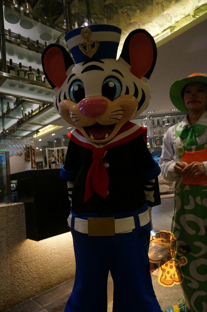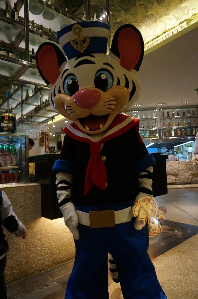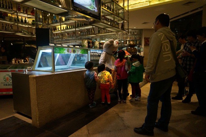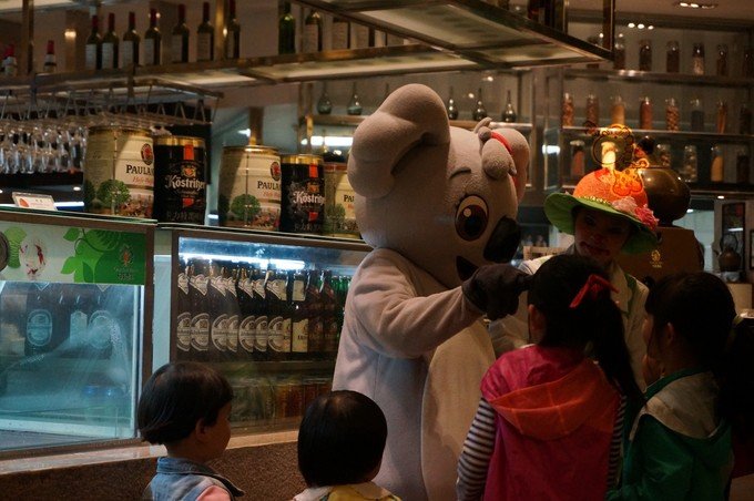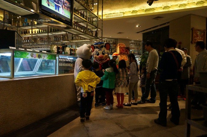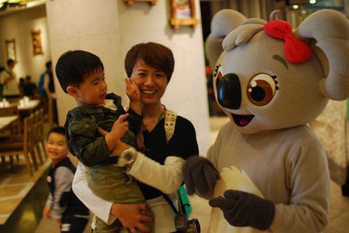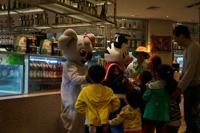 就在吃完饭结帐要走的时候,卡卡来啦~~看看这受小盆友的欢迎,木总还是太小了,看到这些人偶,比较害怕,非常的害怕竟然哭了,呵呵。